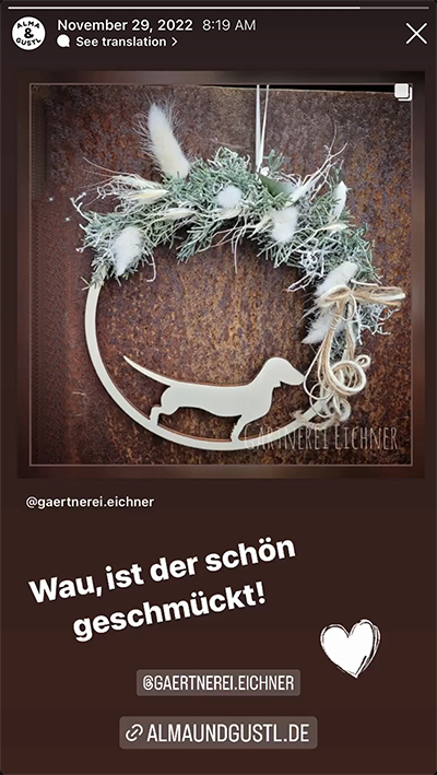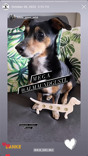 Hey, ich bin Franzi, die Gründerin von ALMA & GUSTL. Ich liebe meine Dackeldame Alma und schöne Designprodukte …