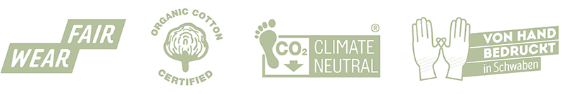 Unsere T-Shirts, Hoodies und Tote Bags sind aus Bio-Baumwolle, nachhaltig und fair produziert. Bedruckt werden sie von Hand und mit viel Liebe bei uns in Schwaben.